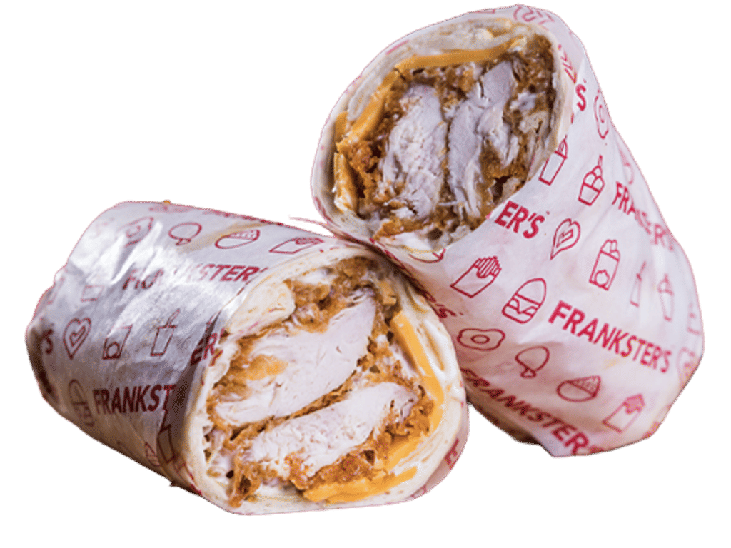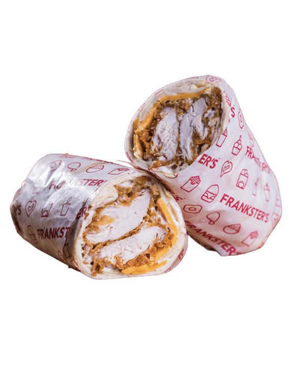 Spicy Floured Chicken Fillet, Gherkins, Cheese, Lettuce, Frankster’s Sauce, Toasted Bun.
