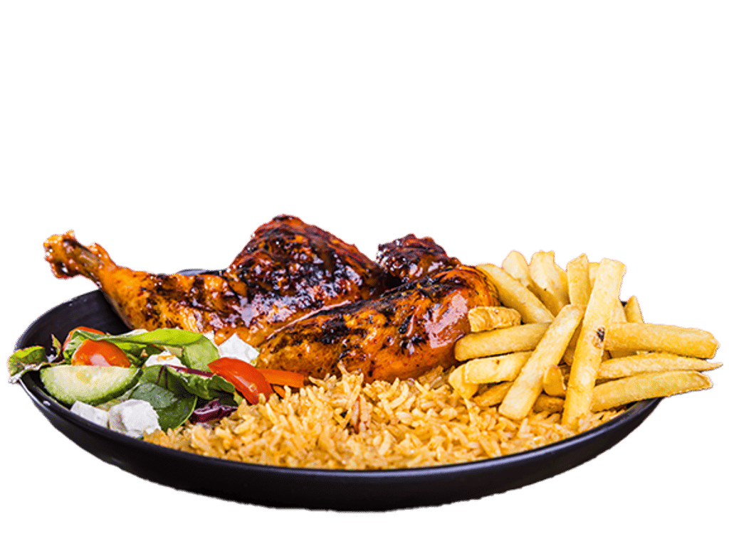 Peri Peri 1/2 Chicken Pick a flavour: Lemon and herb, Mild, Hot, Buffalo Sauce or Jerk.
