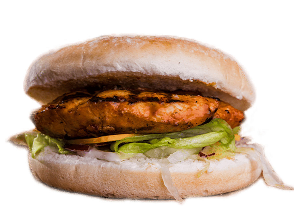 Grilled Peri Peri Chicken Fillet, Peri Peri Sauce, Red Onions, Lettuce, Mayo.