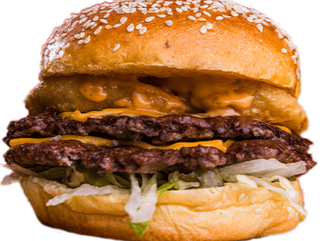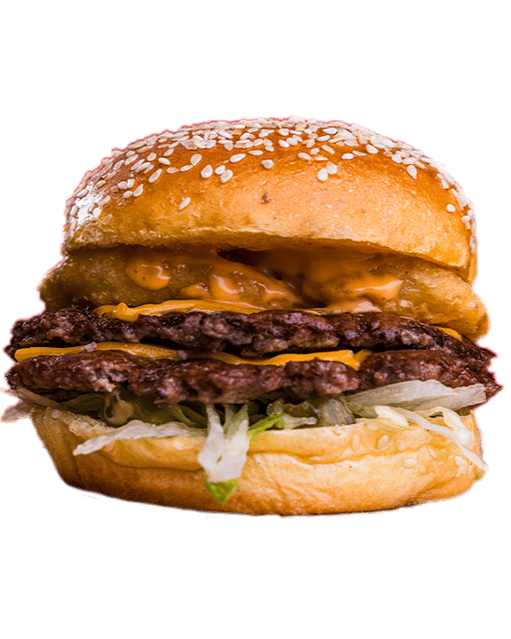 2*2.5oz Angus Smash patty, Cheese, Frankster Sauce, Onion Rings, Lettuce, Gherkins.