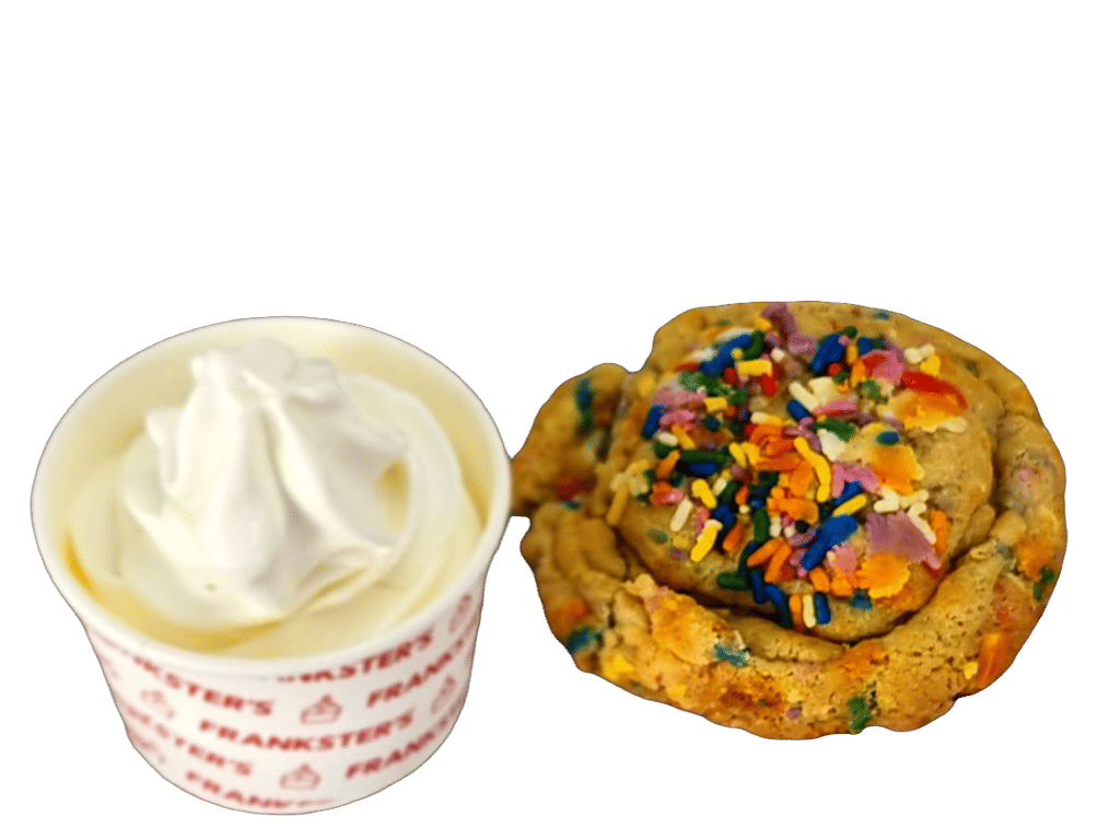 Classic Vanilla bean dough with copious amount of white chololate chips and colourful rainbow sprinkles.