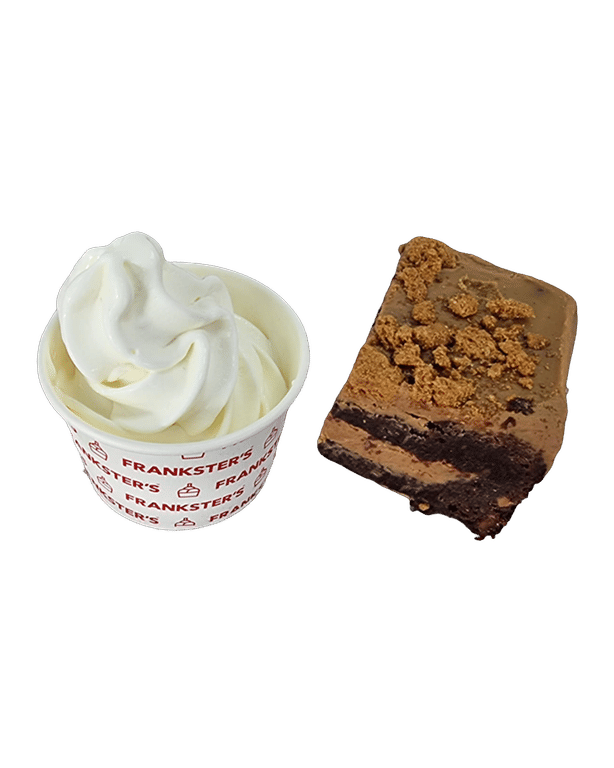 Rich Chocolate brownie, stuffed and topped with silky smooth Lotus Biscoff spread, garnished with Biscoff biscuit crumbles and a Biscoff chocolate segment.