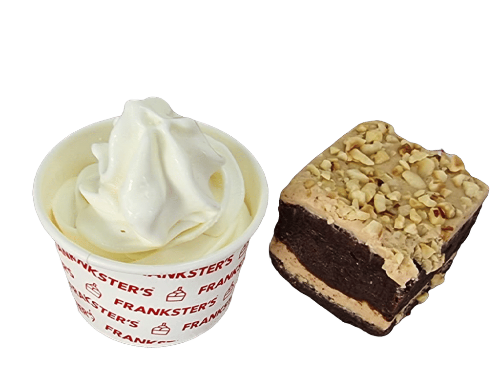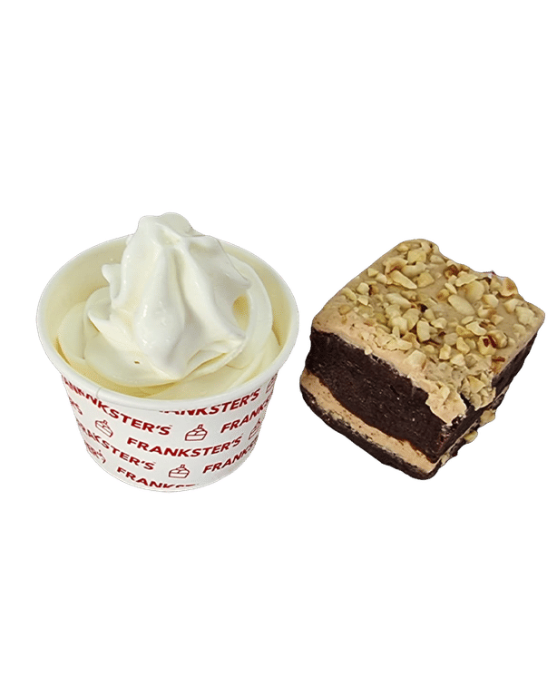 Rich Chocolate brownie, stuffed and topped with dreamy Kinder Bueno hazelnut spread. Garnished with chopped toasted hazelnut and a kinder Bueno chocolate segment.
