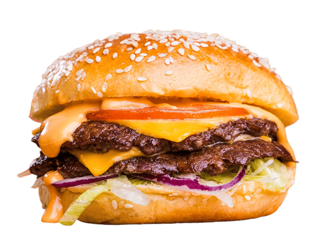 2*2.5oz Angus smash patty, Cheese, Frankster Sauce, Red Onions, Lettuce, Tomato.