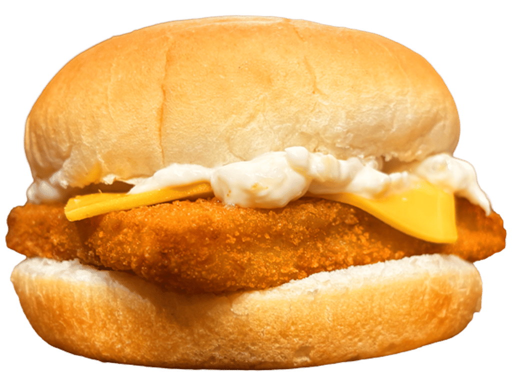 Soft White roll, Tartar sauce and Cheese.